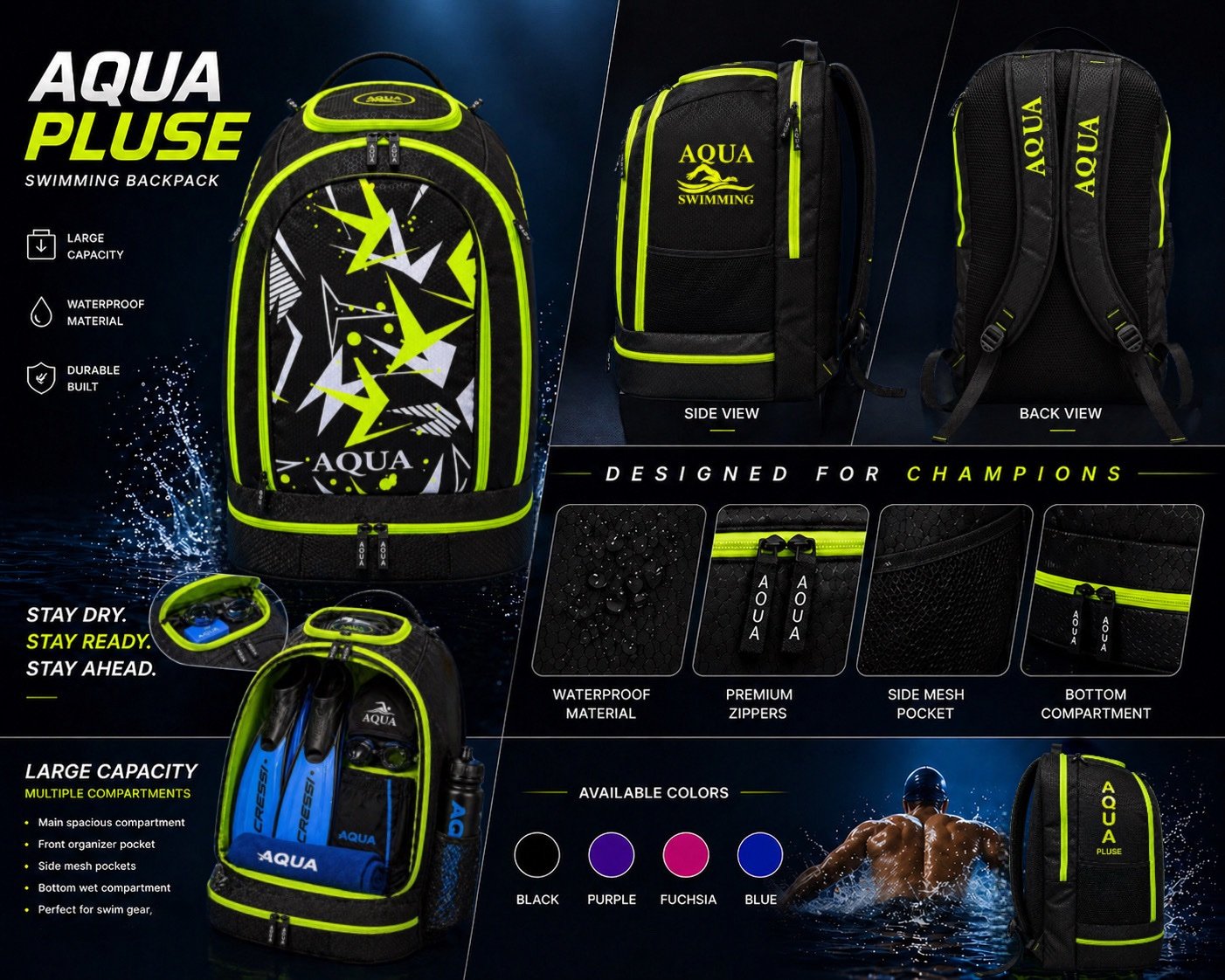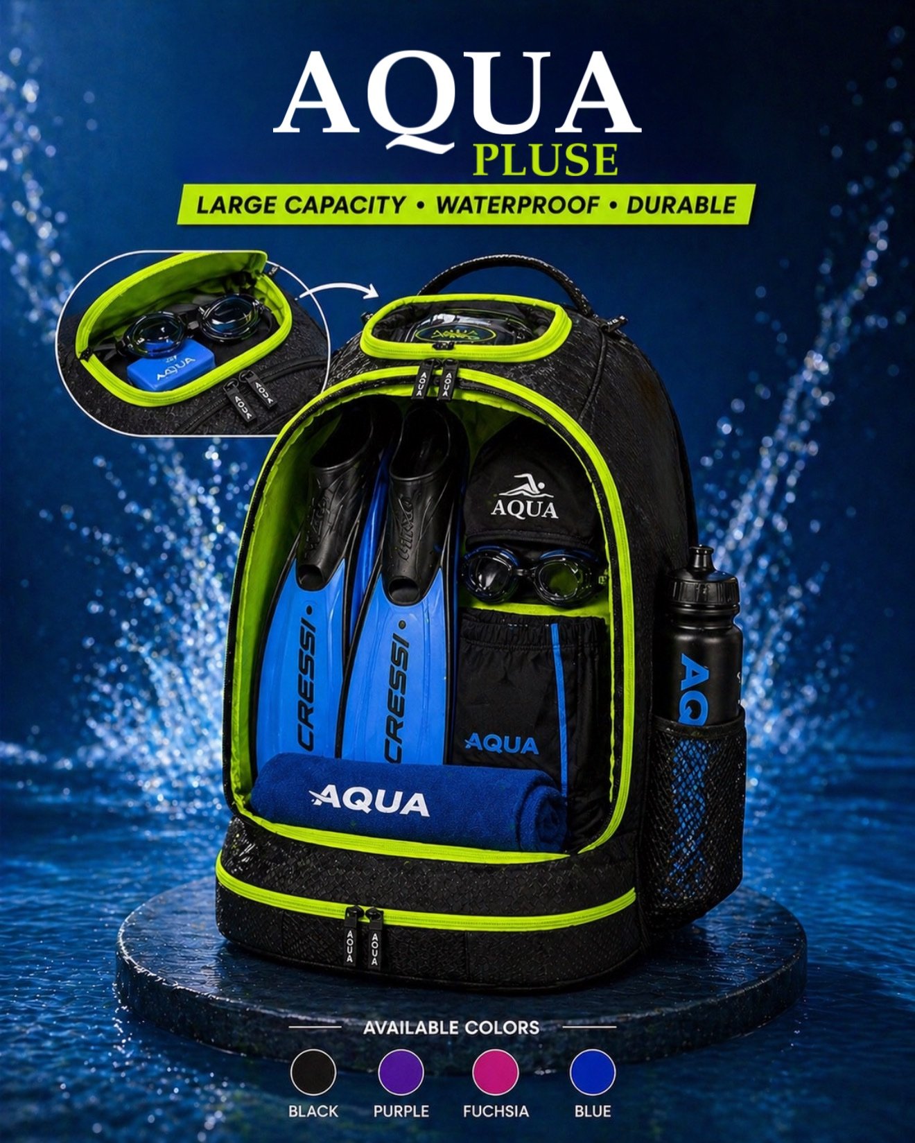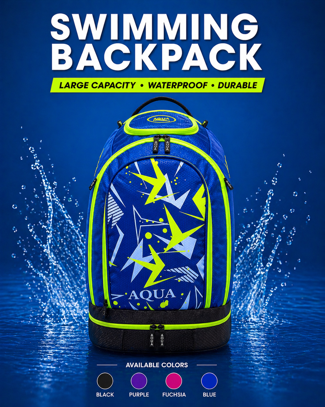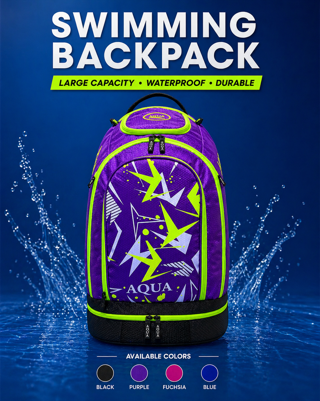 شنطة سباحة AQUA بتصميم عصري وخامات قوية مقاومة للمياه، مناسبة للتمرين والنادي والسفر. تتميز بسعة كبيرة تسمح بحمل جميع مستلزمات السباحة بسهولة مثل المناشف، الملابس، النظارات، والأدوات الشخصية. تحتوي على جيوب متعددة لتنظيم الأغراض، وقاعدة سفلية منفصلة لتخزين الأحذية أو الأدوات المبللة. مزودة بسوست متينة وحمالات ظهر مريحة لسهولة الحمل، ومتوفرة بعدة ألوان جذابة تناسب جميع الأذواق